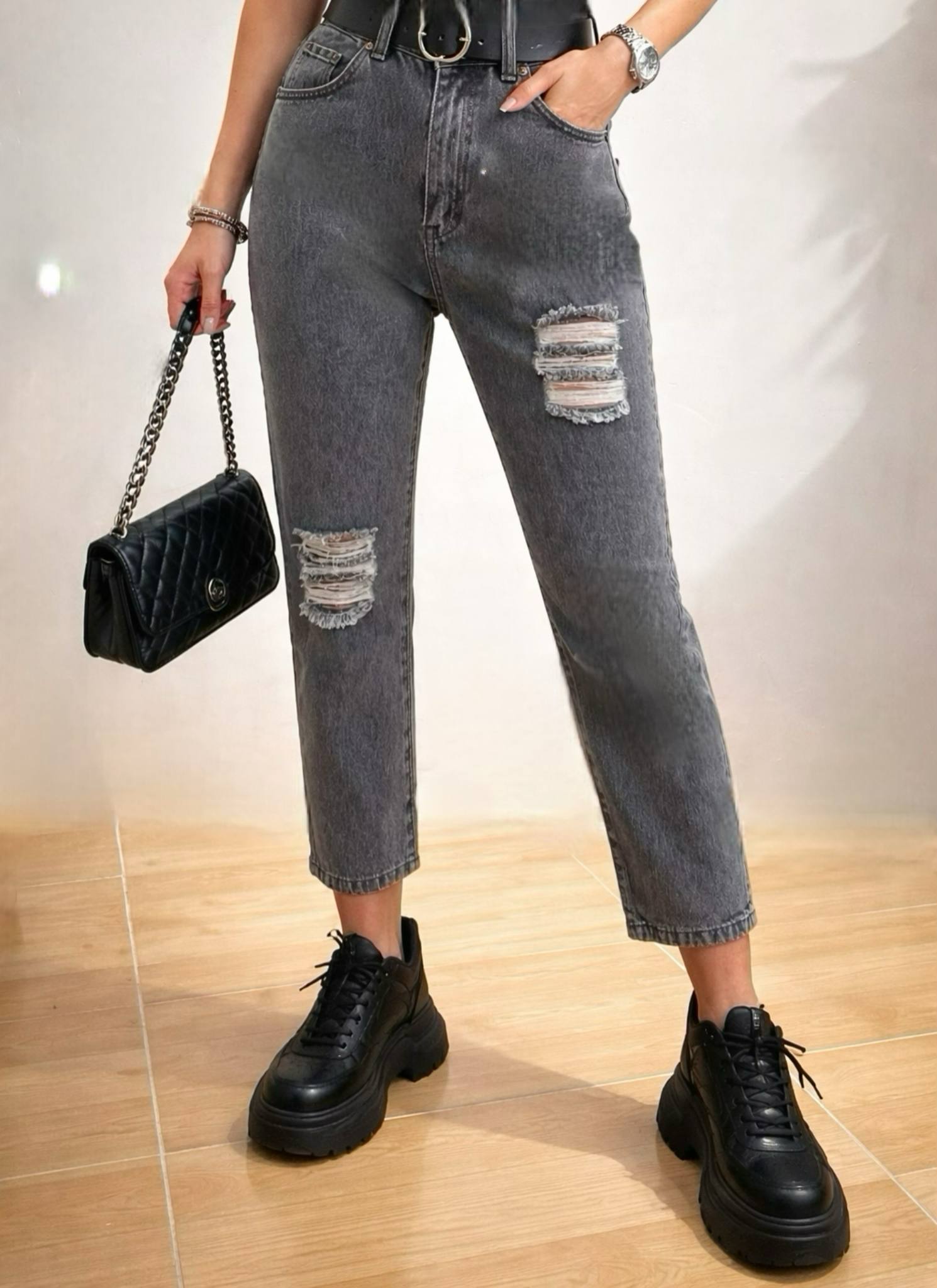 ناموجودشلوار جین زنانه طوسی تیره مدل مام فیت زاپ دار کد ۳۳۰
