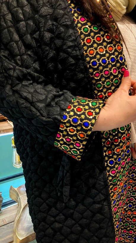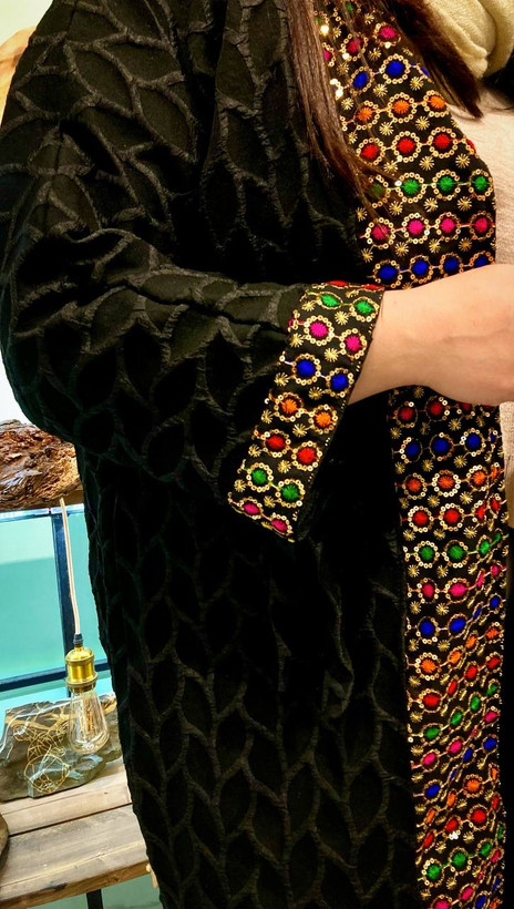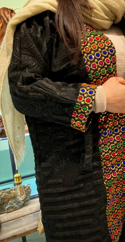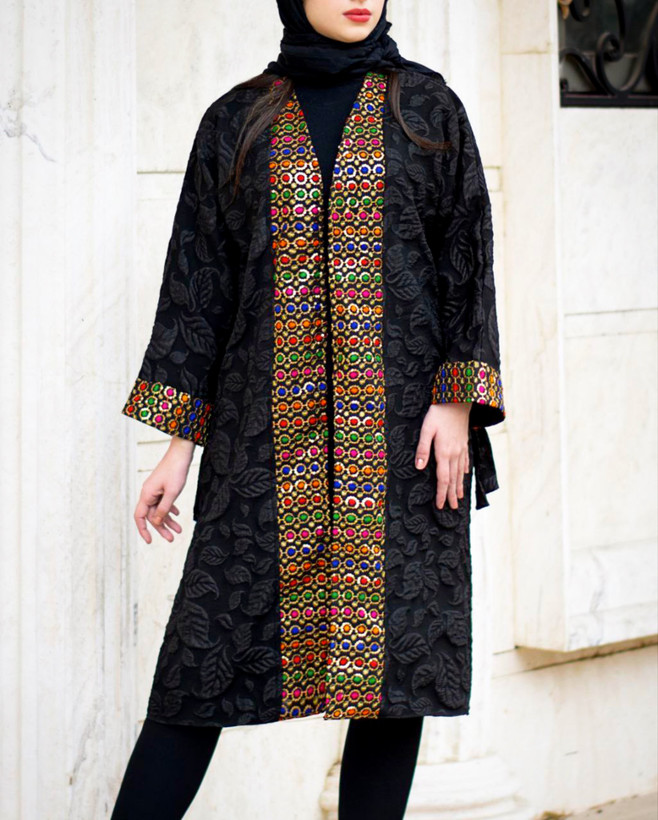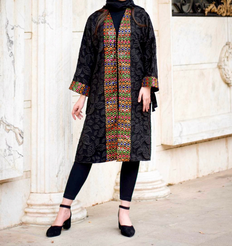 مانتو مزونی زنانه مدل خاتون جنس فکورا برجسته ترکیب با خرج کار سوزن دوزی کد ۱۶۹