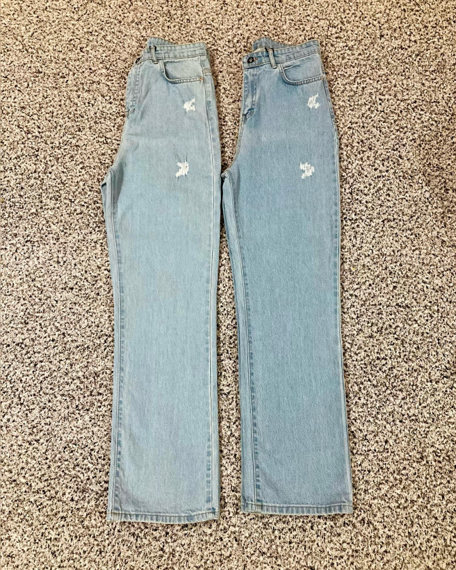 وزن شلوار حدود ۷۱۰گرم ( دور باسن و دور ران حدود یکیدو سانت کشسانی دارن ) • قد همه شلوارها: ۱۱۱ • نوع فاق: بلند • اندازه فاق: ۳۴سانتیمتر سایزبندی : سایز ( ۳۰خارجی )( ۳۸ ایرانی ) : • دور کمر: ۷۲ باکشسانی حدود: ۷۵ • دور باسن: ۹۸ • دور هر ران: ۵۴ • عرض ران: ۲۷ • دور مچ پا: ۴۴باکشسانی: ۴۷ سایز ( ۳۱خارجی ) ( ۴۰ایرانی ) : • دور کمر: ۷۲ باکشسانی: ۷۵ • دور باسن: ۱۰۰ • دور هر ران: ۵۶ • عرض ران: ۲۸ • دور مچ پا: ۴۶ باکشسانی: ۴۹ سایز ( ۳۲خارجی ) ( ۴۲ایرانی ) : • دور کمر: ۷۷ با کشسانی: ۸۰ • دور باسن: ۱۰۵ • دور هر ران: ۵۷ • عرض ران: ۲۸/۵ • دور مچ پا: ۴۶ باکشسانی: ۴۹ سایز ( ۳۳خارجی ) ( ۴۴ایرانی ) : • دورکمر: ۸۳ باکشسانی: ۸۶ • دور باسن: ۱۰۸ • دور ران: ۵۹ • دور مچ پا: ۴۸ باکشسانی: ۵۱ سایز ( ۳۴خارجی ) ( ۴۶ایرانی ) : • دورکمر: ۸۶ باکشسانی: حدود ۹۰ • دور باسن: ۱۱۰ • دور هر ران: ۶۰ • عرض ران: ۳۰ • دور مچ پا: ۴۹ باکشسانی: ۵۲