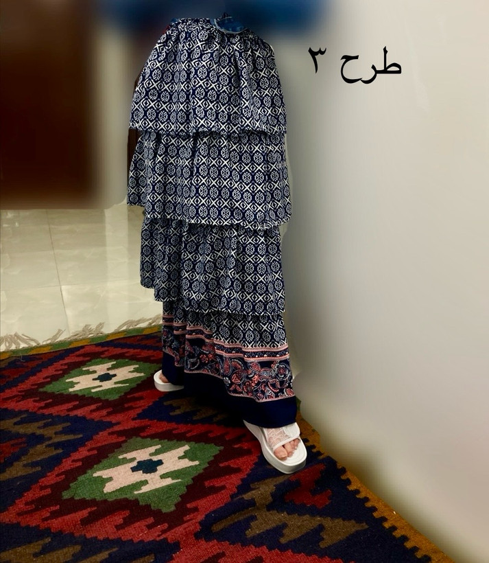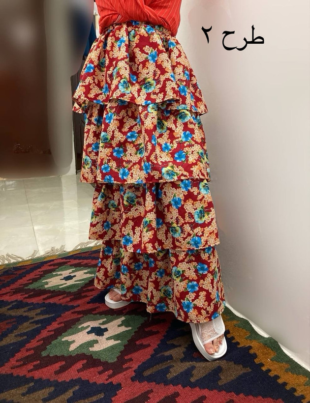 مشخصات طرح ۲: جنس: کریشه پفکی قد ۱۰۰ دور کمر ۵۷ باکشسانی ۱۱۶ دور باسن ۱۱۰ دور دمپای دامن ۱۸۲