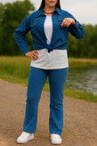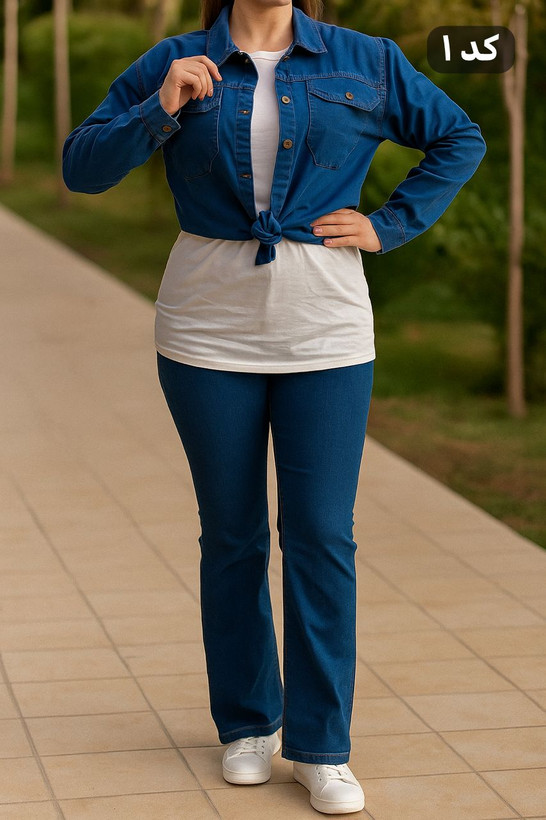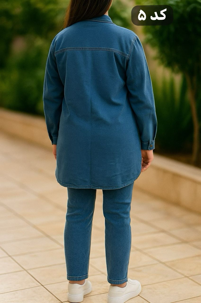 🔺مشخصات کد ۵ سایز دو: 🟣• جنس: جین کاغذی گرم بالا طرح لی • قد از سرشانه: ۷۷ و قد از یقه ۸۲ • دور سینه: ۱۱۲ با کشسانی: ۱۱۶ • دور بازو: ۴۴ با کشسانی: ۵۰ • قد آستین از گوشه گردن: ۷۰ دور باسن ۱۲۰با کشسانی ۱۳۰ • فریسایز مناسب از (۴۰ تا ۴۶-۴۸)