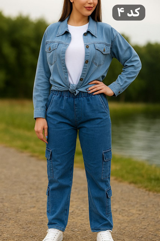 🔺مشخصات کد ۴ سایز یک: جنس: جین کاغذی(این نسبت به بقیه کمی گرم پایینتر و نازکتره) • قد از سرشانه : ۷۸ قد از یقه ۸۱ • قد آستین از گوشه گردن: ۷۰ • دور سینه: ۱۰۷ با کشسانی: ۱۱۰ • دور بازو: ۴۳ با کشسانی: ۴۶ دور باسن۱۱۵ با کشسانی ۱۲۱ • فریسایز مناسب از ۳۶ تا ۴۴-۴۶