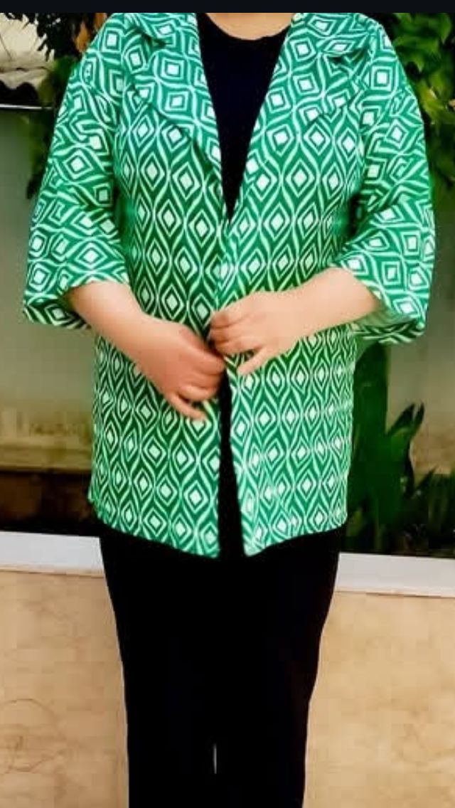بدون دکمه ست که به دلخواه میتونید قزن یا یه دکمه یا گل سینه جلو بسته کنید