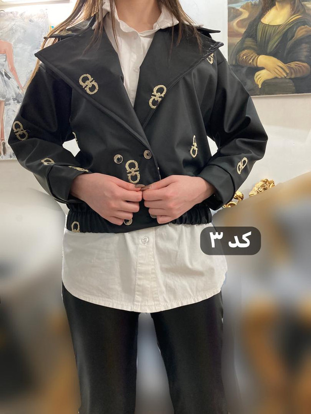 بامبر کتی (کراپ کت) جنس چرم گرم بالا طرح گوچی (گلدوزی شده)
