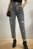 شلوار جین زنانه طوسی روشن ملایم مدل مام فیت زاپ دار کد ۳۳۱