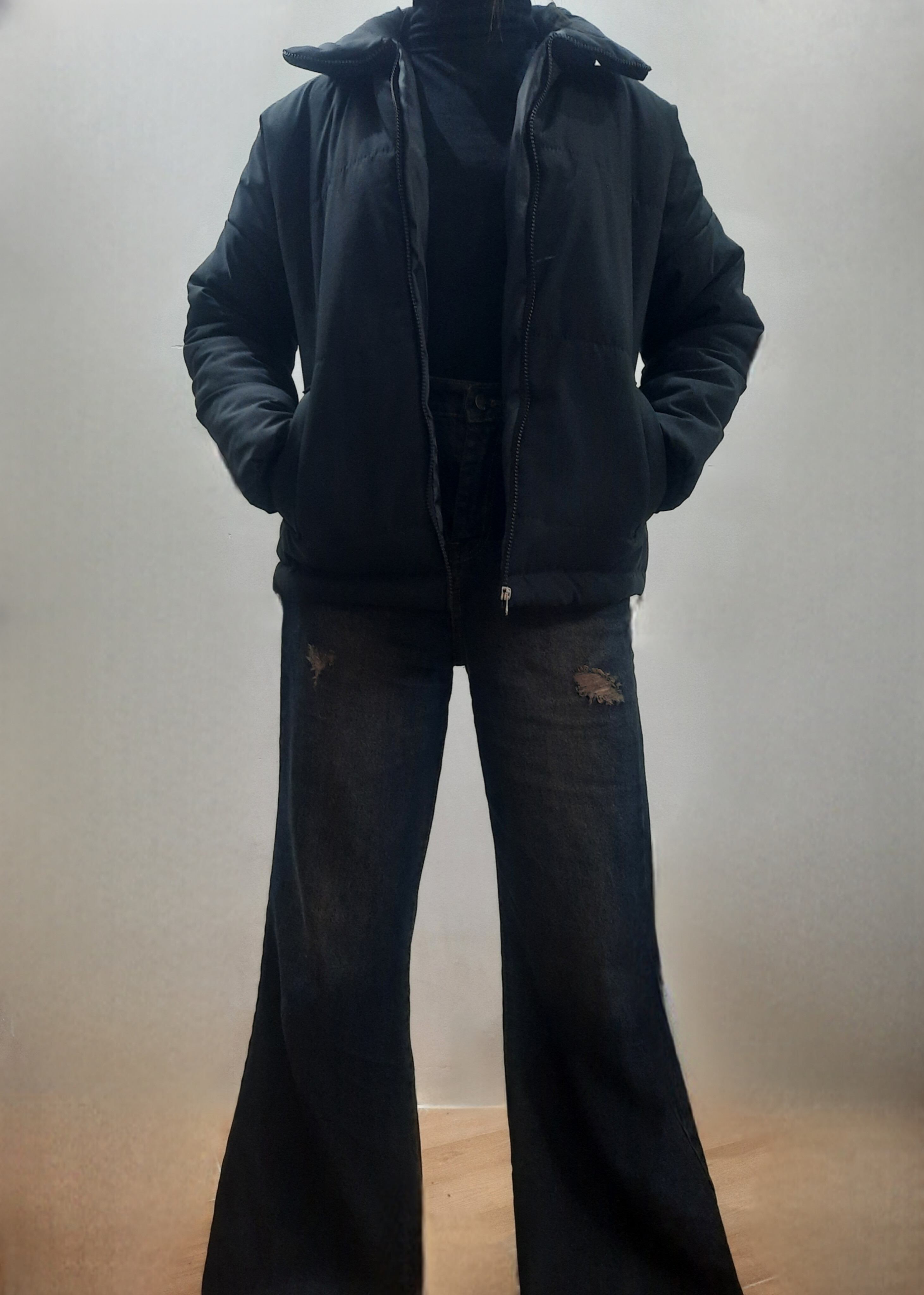کاپشن کتان زارا ضد آب استردار مشکی یقه اسکی مانند داخل پشم شیشه با تنخور شیک