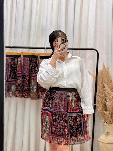 خوبی این دامن طرح سنتی زیبا اینه که میشه با چند رنگ شومیز وکت و تیشرت و.... استایل شیک واسه مهمونی های دخترونه و زنونه زد