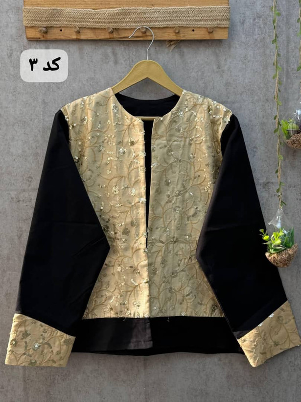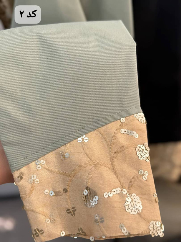 جلوی کار و لبه آستین مثل تصویر با خرج کار سوزن دوزی ترکیب جذاب و زیبا تبدیل شده