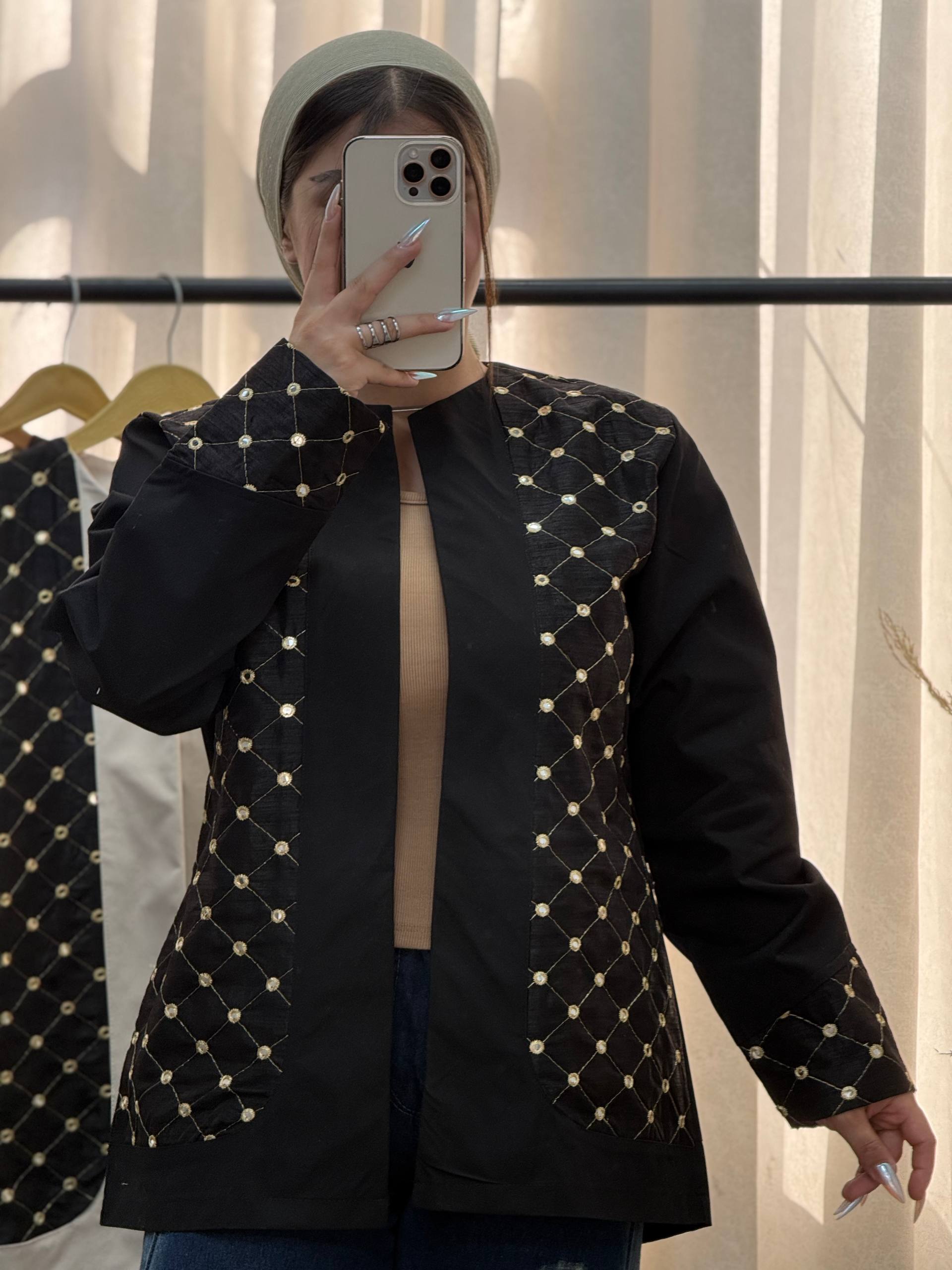 کت زنانه جنس کتان کجراه ترکیب با خرجکار کد ۳۶۷